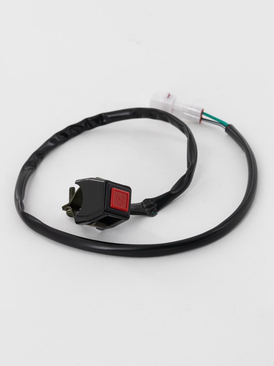 Кнопка стоп-двигатель для мотоциклов и питбайков. Подходит на рули 22 мм и 28 мм. Длина провода 590 мм. Материал кнопка - пластик.